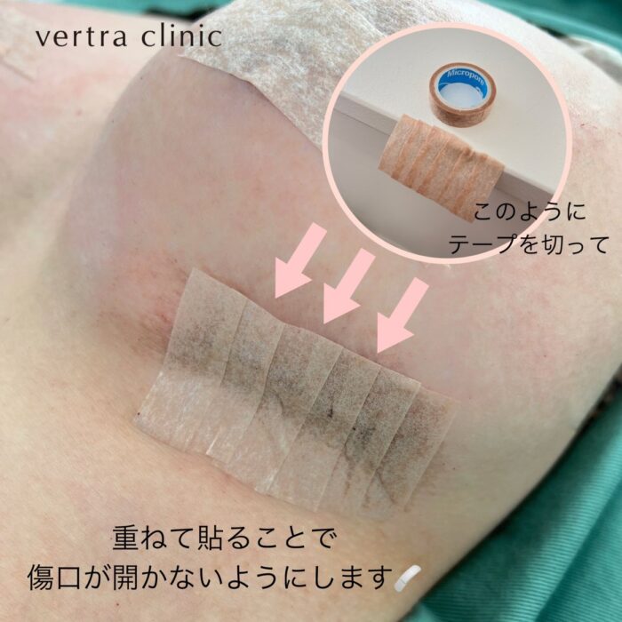 ヴェルトラクリニックでは、手術直後から看護師がマイクロポアテープを貼付しています。
